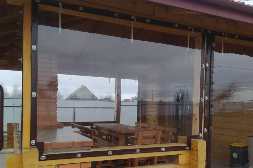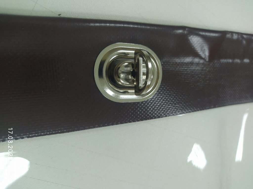 Применяется в тех случаях, когда требуется установить мягкое окно наглухо, без необходимости быстрого съема или скручивания в рулон. В таком случае изделие фиксируется на проем с помощью саморезов через шайбу и данный люверс.