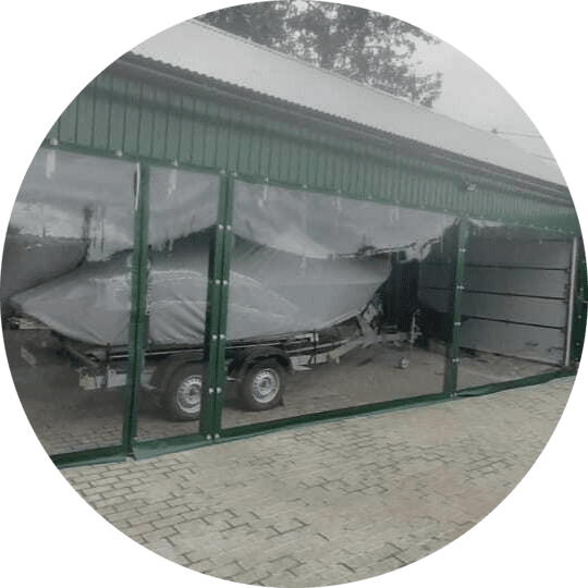 - Готовое изделие из ПВХ с окантовкой и люверсами;
